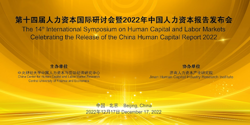 2022年12月17日,第十四屆中國(guó)人力資本指數(shù)發(fā)布暨人力資本國(guó)際研討會(huì)在中央財(cái)經(jīng)大學(xué)召開(kāi)。本次發(fā)布會(huì)由中央財(cái)經(jīng)大學(xué)人力資本與勞動(dòng)經(jīng)濟(jì)研究中心主辦。中國(guó)人力資本度量項(xiàng)目負(fù)責(zé)人、中央財(cái)經(jīng)大學(xué)特聘教授、美國(guó)佐治亞理工學(xué)院教授李海崢和Jorgenson-Fraumeni人力資本計(jì)算法創(chuàng)始人、中央財(cái)經(jīng)大學(xué)特聘教授、美國(guó)NBER研究員Barbara Fraumeni教授共同發(fā)布了中英版的《中國(guó)人力資本報(bào)告2022》。