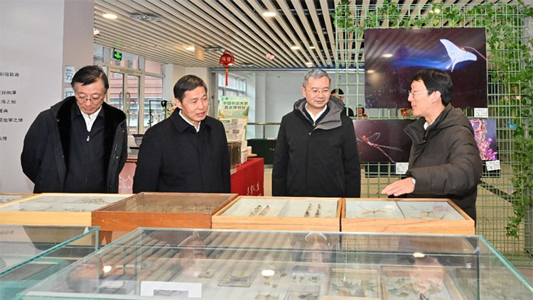 熊四皓一行首先前往檔案與校史館,了解中國農(nóng)業(yè)大學(xué)辦學(xué)歷史情況。在新植保樓聽取學(xué)校科技自立自強(qiáng)、服務(wù)鄉(xiāng)村振興、科技小院建設(shè)等情況匯報。在生命科學(xué)研究中心調(diào)研植物抗逆高效全國重點(diǎn)實(shí)驗(yàn)室,并聽取實(shí)驗(yàn)室工作匯報。隨后前往昆蟲博物館、北京市動物醫(yī)學(xué)教學(xué)中心和動物醫(yī)學(xué)標(biāo)本館、飼料博物館,調(diào)研植物保護(hù)、獸醫(yī)學(xué)、畜牧學(xué)等學(xué)科建設(shè)等情況。