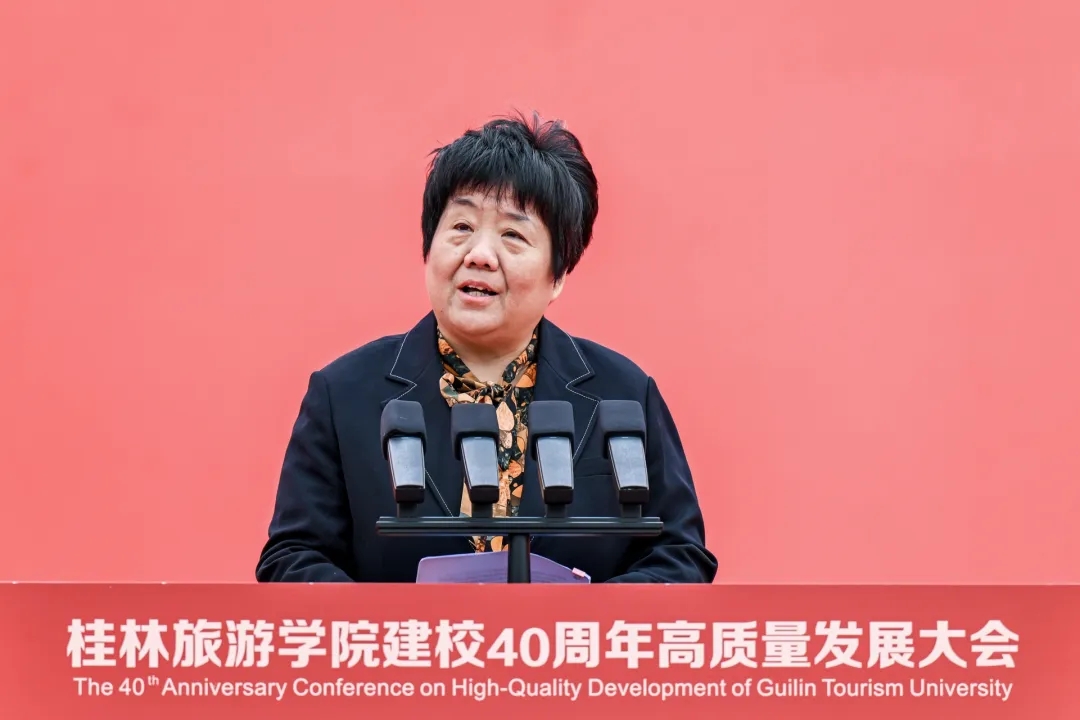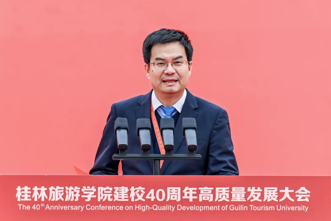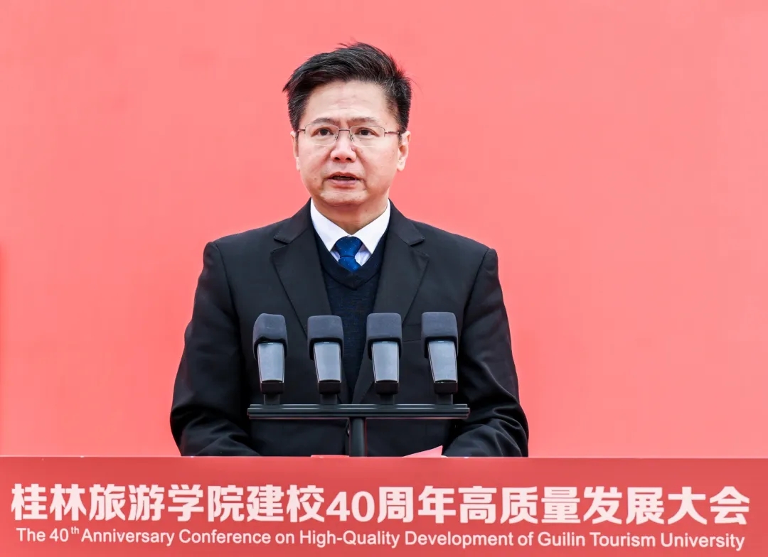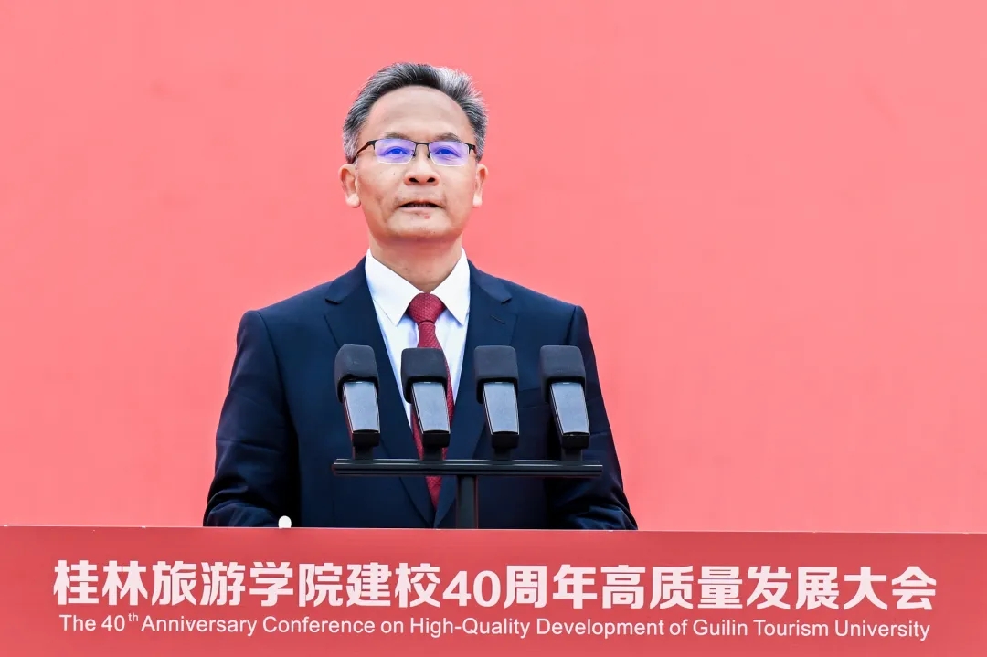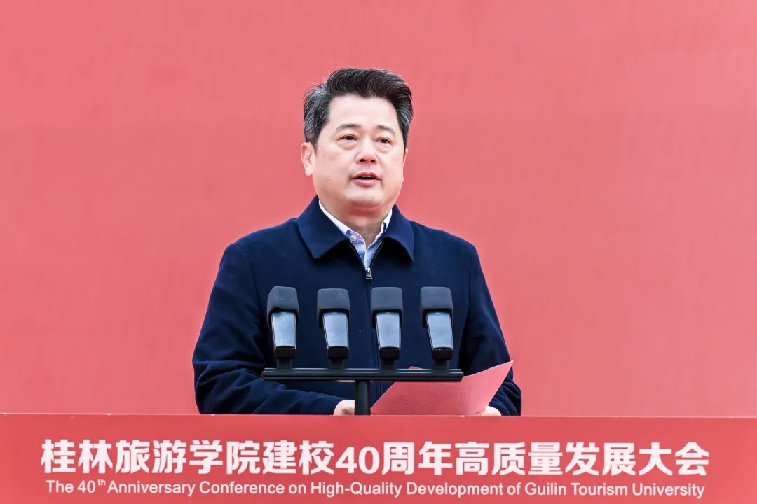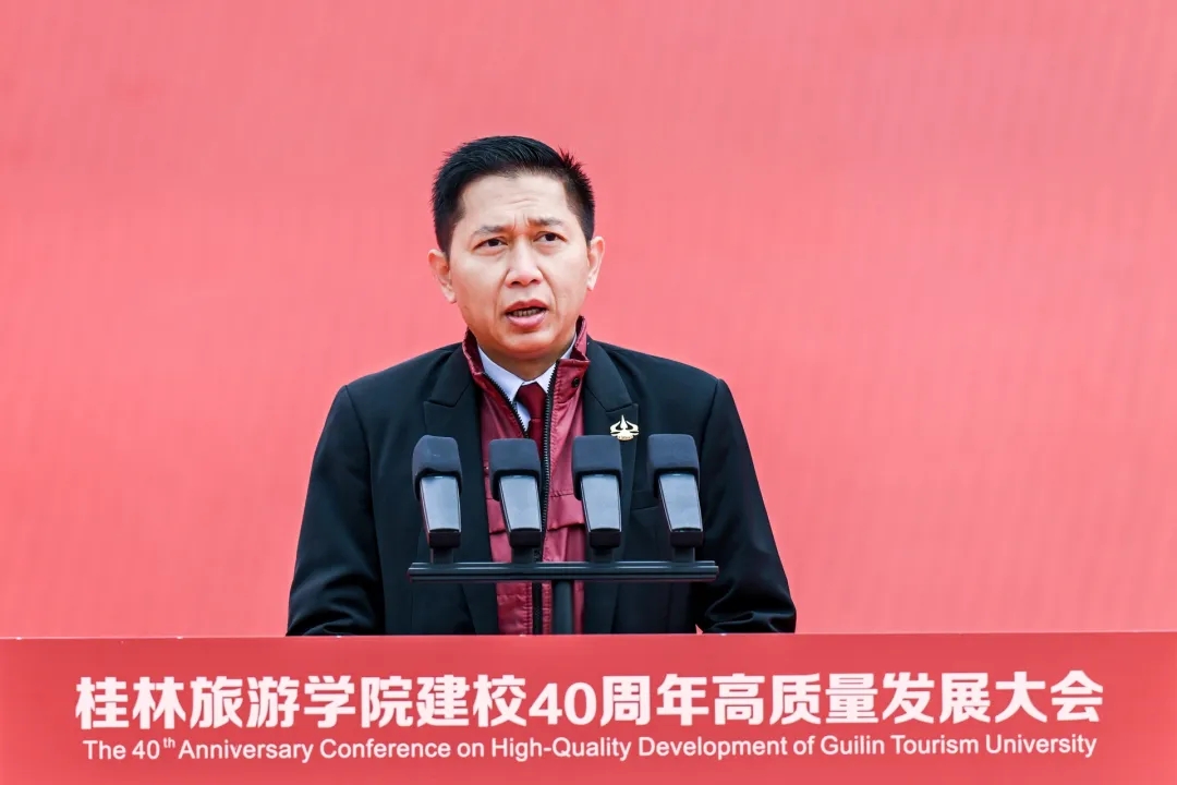 何辛幸代表自治區(qū)黨委、政府對(duì)桂林旅游學(xué)院建校40周年表示祝賀。他指出,建校40年來(lái),桂林旅游學(xué)院在人才培養(yǎng)、科研創(chuàng)新和服務(wù)社會(huì)等多個(gè)領(lǐng)域取得豐碩成果,為地方經(jīng)濟(jì)社會(huì)發(fā)展,特別是旅游業(yè)發(fā)展作出了重要貢獻(xiàn)。他要求,桂林旅游學(xué)院要全面貫徹黨的教育方針和全國(guó)教育大會(huì)精神,落實(shí)立德樹人根本任務(wù),加強(qiáng)師資隊(duì)伍建設(shè),創(chuàng)新人才培養(yǎng)模式,不斷提高辦學(xué)質(zhì)量和水平,在服務(wù)國(guó)家戰(zhàn)略和地方發(fā)展中展現(xiàn)新作為。要全面提高人才培養(yǎng)質(zhì)量,以“十五五”規(guī)劃為統(tǒng)領(lǐng),發(fā)揮特色優(yōu)勢(shì),強(qiáng)化教育改革、科技創(chuàng)新與隊(duì)伍建設(shè),加速科研成果轉(zhuǎn)化,構(gòu)建適配且適度超前的人才培養(yǎng)體系。要積極主動(dòng)服務(wù)旅游發(fā)展大局,深度參與旅游強(qiáng)區(qū)建設(shè),力爭(zhēng)在“低空經(jīng)濟(jì)+旅游”“康養(yǎng)+旅游”“體育+旅游”等新興賽道實(shí)現(xiàn)突破,緊緊圍繞打造世界旅游目的地、桂林世界級(jí)旅游城市建設(shè)、文旅融合、鄉(xiāng)村振興等重大課題開展研究,助推全區(qū)旅游業(yè)高質(zhì)量發(fā)展。要與時(shí)俱進(jìn),擁抱人工智能時(shí)代,找準(zhǔn)優(yōu)勢(shì)賽道,充分發(fā)揮廣西旅游數(shù)據(jù)中心、廣西文化和旅游智慧技術(shù)重點(diǎn)實(shí)驗(yàn)室等平臺(tái)支撐作用,加強(qiáng)專業(yè)團(tuán)隊(duì)建設(shè),推動(dòng)人工智能在智能伴游、導(dǎo)覽等關(guān)鍵場(chǎng)景的垂直應(yīng)用,全力助推打造面向東盟的 “人工智能+文旅”新高地。