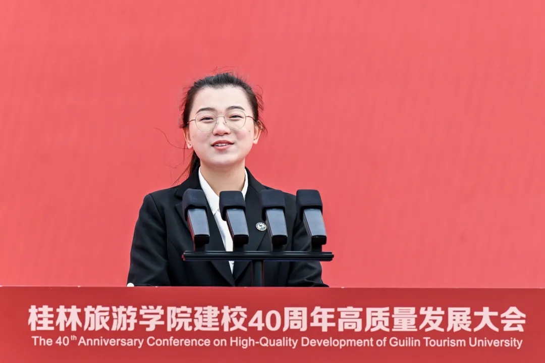 四秩文旅筑夢(mèng),桃李芬芳報(bào)國(guó)。11月18日上午,桂林旅游學(xué)院建校40周年高質(zhì)量發(fā)展大會(huì)在雁山校區(qū)田徑運(yùn)動(dòng)場(chǎng)隆重舉行。