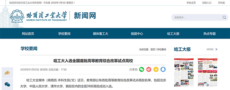 近日,哈爾濱工程大學成功入選全國首批39所高等教育綜合改革試點高校。
