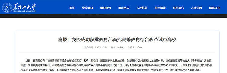 作為首批試點高校,學校將以高等教育綜合改革試點為契機,凝聚全校合力,強化統(tǒng)籌聯(lián)動,不折不扣落實各項改革舉措,全面提升軟硬件辦學條件,顯著提升人才培養(yǎng)質量與核心競爭力,著力打造東北亞高等教育人才培養(yǎng)高地和全國高校對俄人才培養(yǎng)標桿樣板,系統(tǒng)增強服務國家向北開放戰(zhàn)略及區(qū)域經濟社會發(fā)展的核心能力,勇?lián)姑?、踔厲奮發(fā),在高等教育高質量發(fā)展征程上再創(chuàng)佳績。