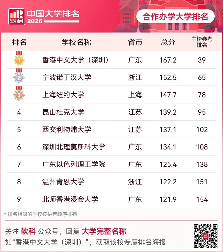 4月15日,高等教育專業(yè)評(píng)價(jià)機(jī)構(gòu)軟科正式發(fā)布 “2026軟科中國(guó)大學(xué)排名”。寧波諾丁漢大學(xué)在全國(guó)1000多所參評(píng)高校中位列參考排名第65位,綜合實(shí)力穩(wěn)居“雙一流”高校上游梯隊(duì);在中國(guó)合作大學(xué)榜單中高居第2位,辦學(xué)實(shí)力再獲權(quán)威認(rèn)可。