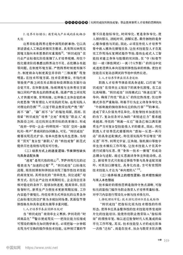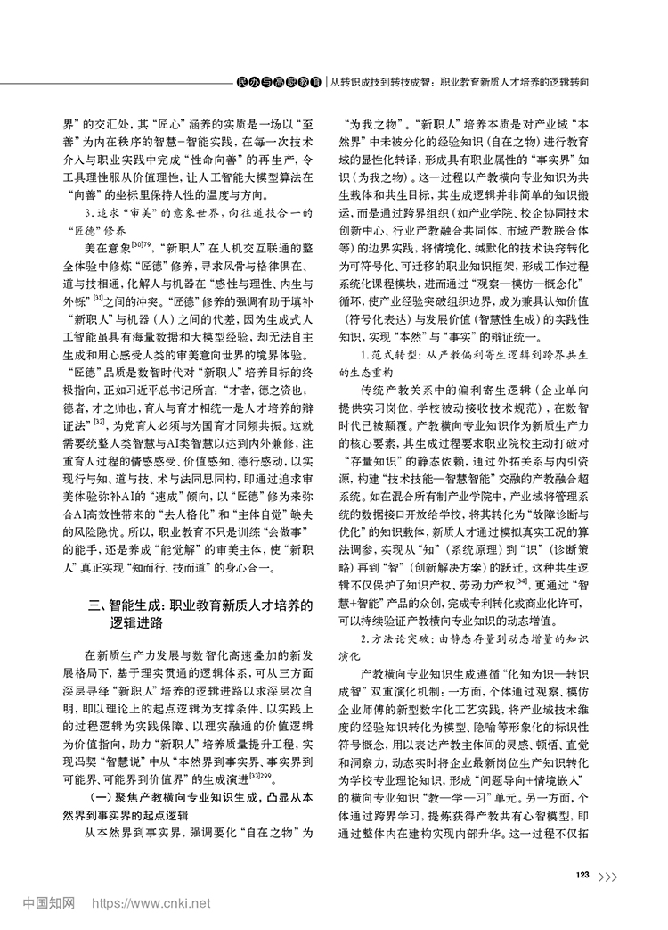 尚晶 馮用軍|從轉(zhuǎn)識成技到轉(zhuǎn)技成智:職業(yè)教育新質(zhì)人才培養(yǎng)的邏輯轉(zhuǎn)向