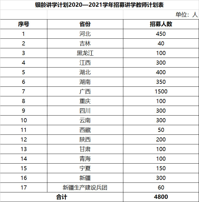 2020—2021學(xué)年全國計(jì)劃招募4800名講學(xué)教師。