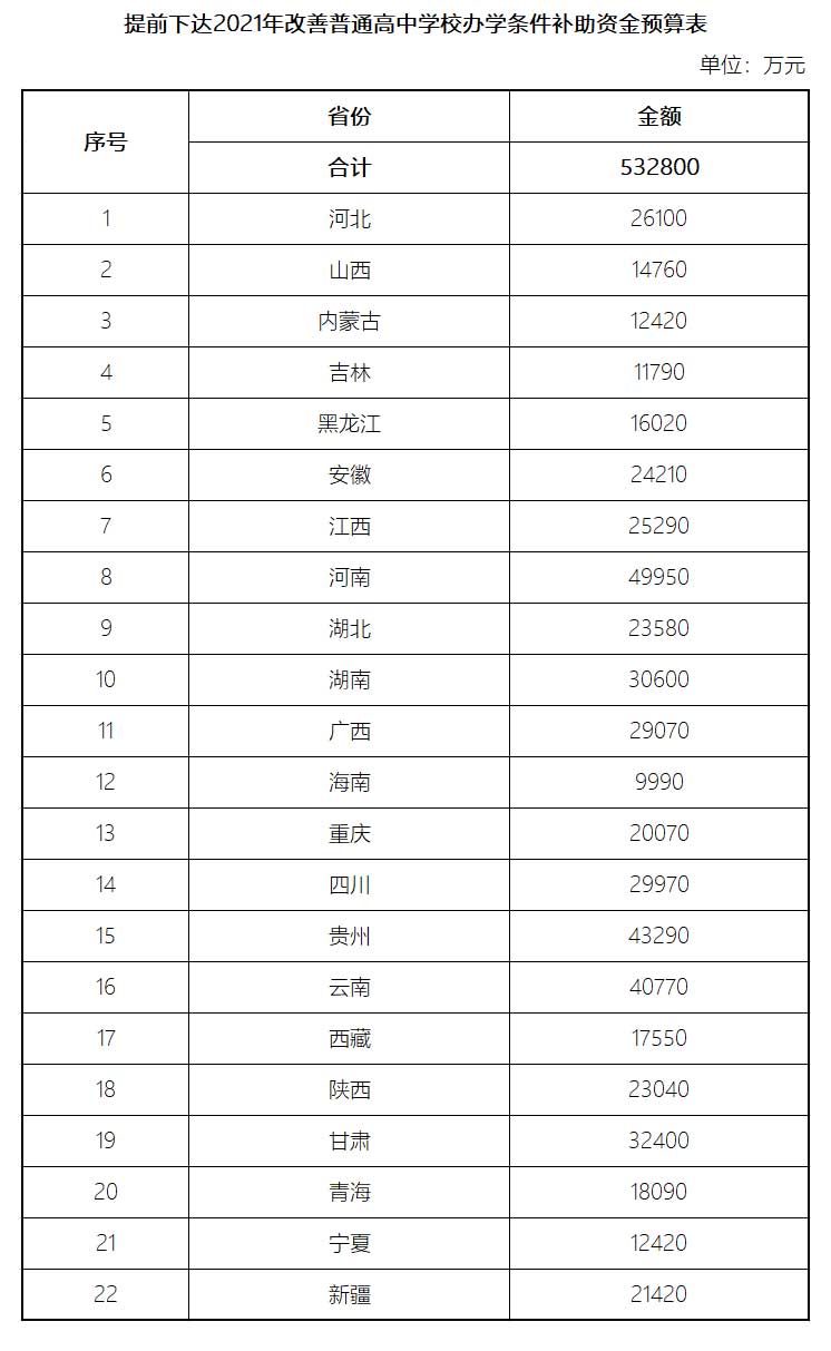 附件:提前下達(dá)2021年改善普通高中學(xué)校辦學(xué)條件補(bǔ)助資金預(yù)算表