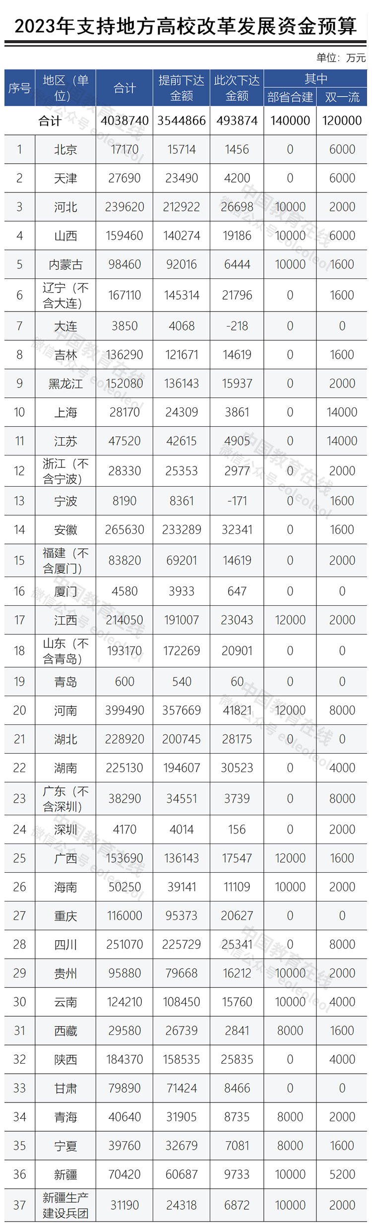 2023年支持地方高校改革發(fā)展資金預(yù)算表如下: