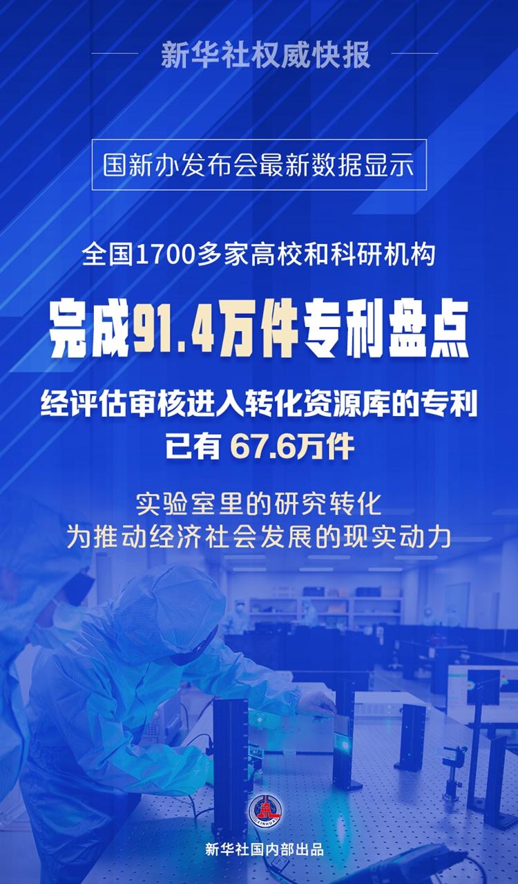 記者從4月24日舉行的國(guó)新辦發(fā)布會(huì)上獲悉,截至目前,全國(guó)已有1700多家高校和科研機(jī)構(gòu)完成了91.4萬(wàn)件專利盤(pán)點(diǎn),其中發(fā)明專利63.6萬(wàn)件,超過(guò)高校和科研機(jī)構(gòu)有效發(fā)明專利總量的六成。