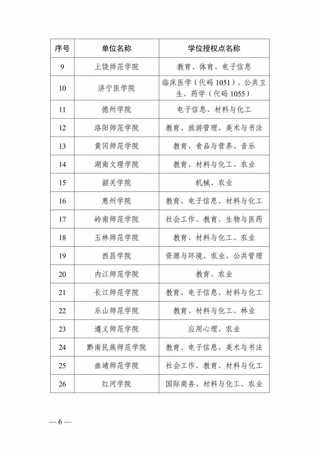 2023年度審核增列的博士、碩士學(xué)位授予單位及其新增學(xué)位授權(quán)點名單如下: