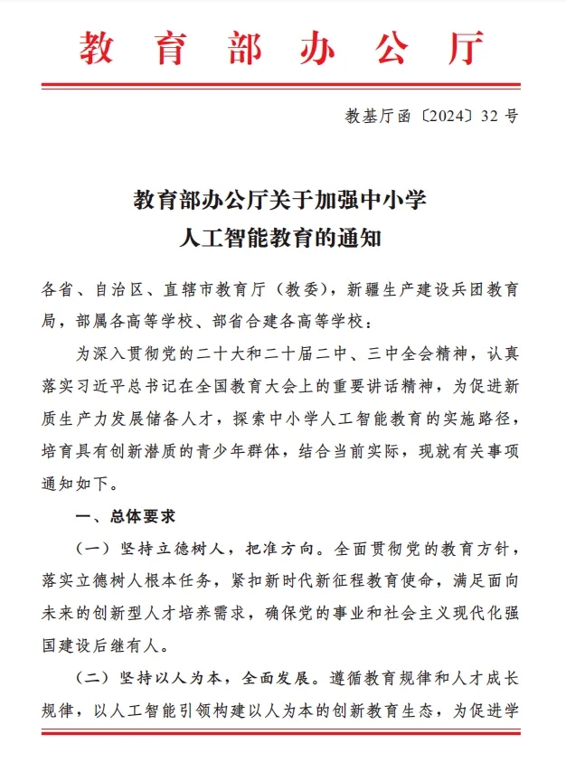 通知強調(diào),要加強頂層設計和部門協(xié)同,統(tǒng)籌推進中小學和大學人工智能教育一體化發(fā)展,2030年前在中小學基本普及人工智能教育。