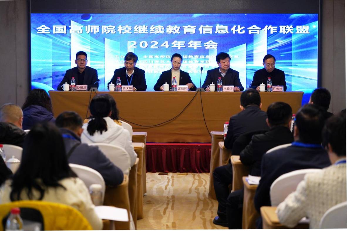 2024年12月25日-12月28日,由全國高師院校繼續(xù)教育信息化合作聯(lián)盟主辦,四川師范大學(xué)繼續(xù)教育學(xué)院、西昌民族幼兒師范高等??茖W(xué)校和新繼教網(wǎng)(北京)教育咨詢有限公司共同承辦的全國高師院校繼續(xù)教育信息化合作聯(lián)盟2024年年會在四川省涼山彝族自治州西昌市盛大召開。教育部職業(yè)教育與成人教育司高等繼續(xù)教育處副處長徐璐,北京師范大學(xué)教授、全國高?,F(xiàn)代遠(yuǎn)程教育協(xié)作組常務(wù)秘書長李德芳,四川師范大學(xué)黨委常委、副校長郭朝輝,廣西師范大學(xué)黨委常委、副校長黃文韜,中共涼山州委教育工委委員、涼山州教育體育局黨組成員、副局長許俊洪,西昌民族幼兒師范高等??茖W(xué)校黨委委員、紀(jì)委書記沙德康以及來自哈爾濱師范大學(xué)、廣西師范大學(xué)、河南師范大學(xué)、云南師范大學(xué)、安徽師范大學(xué)、內(nèi)蒙古師范大學(xué)、河北師范大學(xué)、江西師范大學(xué)等多所高校和聯(lián)盟秘書長單位新繼教網(wǎng)等近百位代表齊聚一堂,共襄盛會。會議由四川師范大學(xué)繼續(xù)教育學(xué)院黨總支書記張智和內(nèi)蒙古師范大學(xué)繼續(xù)教育學(xué)院院長牛佳主持。