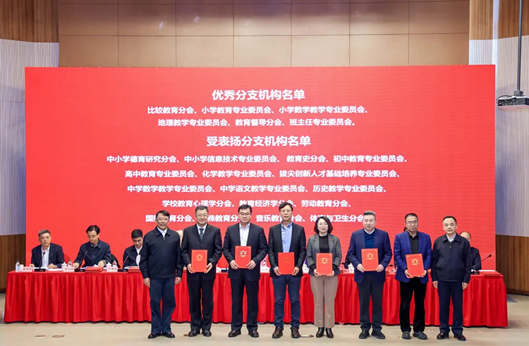 會上,公布了中國教育學會2024年度優(yōu)秀分支機構名單。楊銀付宣讀了《中國教育學會關于公布2024年度優(yōu)秀分支機構的決定》。經(jīng)學會考核委員會集體評審,學會比較教育分會、小學教育專業(yè)委員會、小學數(shù)學教學專業(yè)委員會、地理教學專業(yè)委員會、教育督導分會、班主任專業(yè)委員會等6個分支機構被評定為“優(yōu)秀分支機構”,并對在方向引領、品牌建設、規(guī)范管理、隊伍建設、學術成果、服務質量等方面表現(xiàn)比較突出的17個分支機構予以表揚。中國教育學會會長朱之文、顧問鄭富芝共同為學會2024年度優(yōu)秀分支機構頒發(fā)證書。
