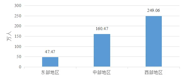 從區(qū)域來(lái)看,西部地區(qū)資助159.38億元,占68.85%;中部地區(qū)資助49.09億元,占21.21%;東部地區(qū)資助23.01億元,占9.94%。