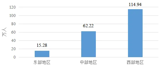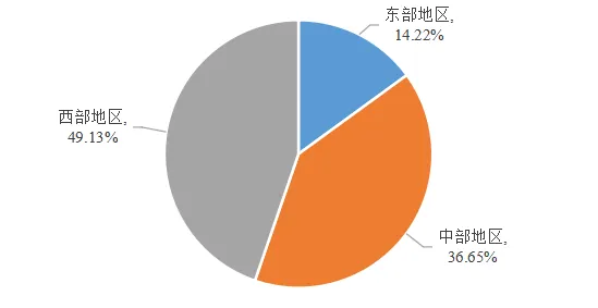 從區(qū)域來(lái)看,西部地區(qū)資助30.40億元,占49.13%;中部地區(qū)資助22.68億元,占36.65%;東部地區(qū)資助8.80億元,占14.22%。