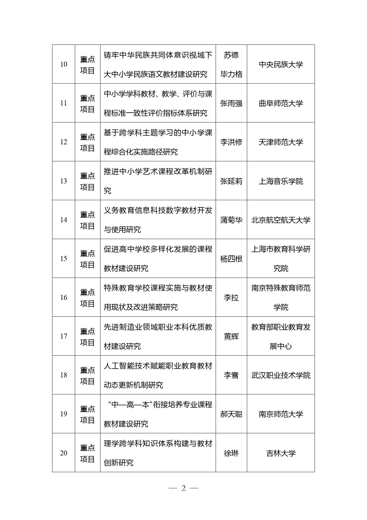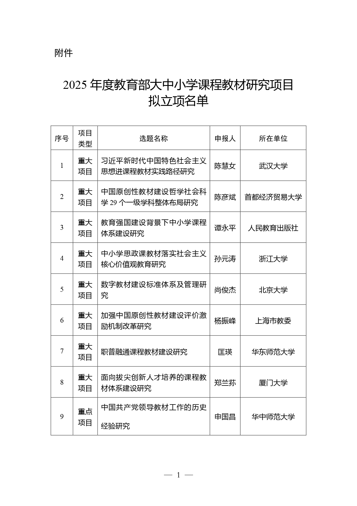 教育部公示2025年度大中小學(xué)課程教材研究項目擬立項名單