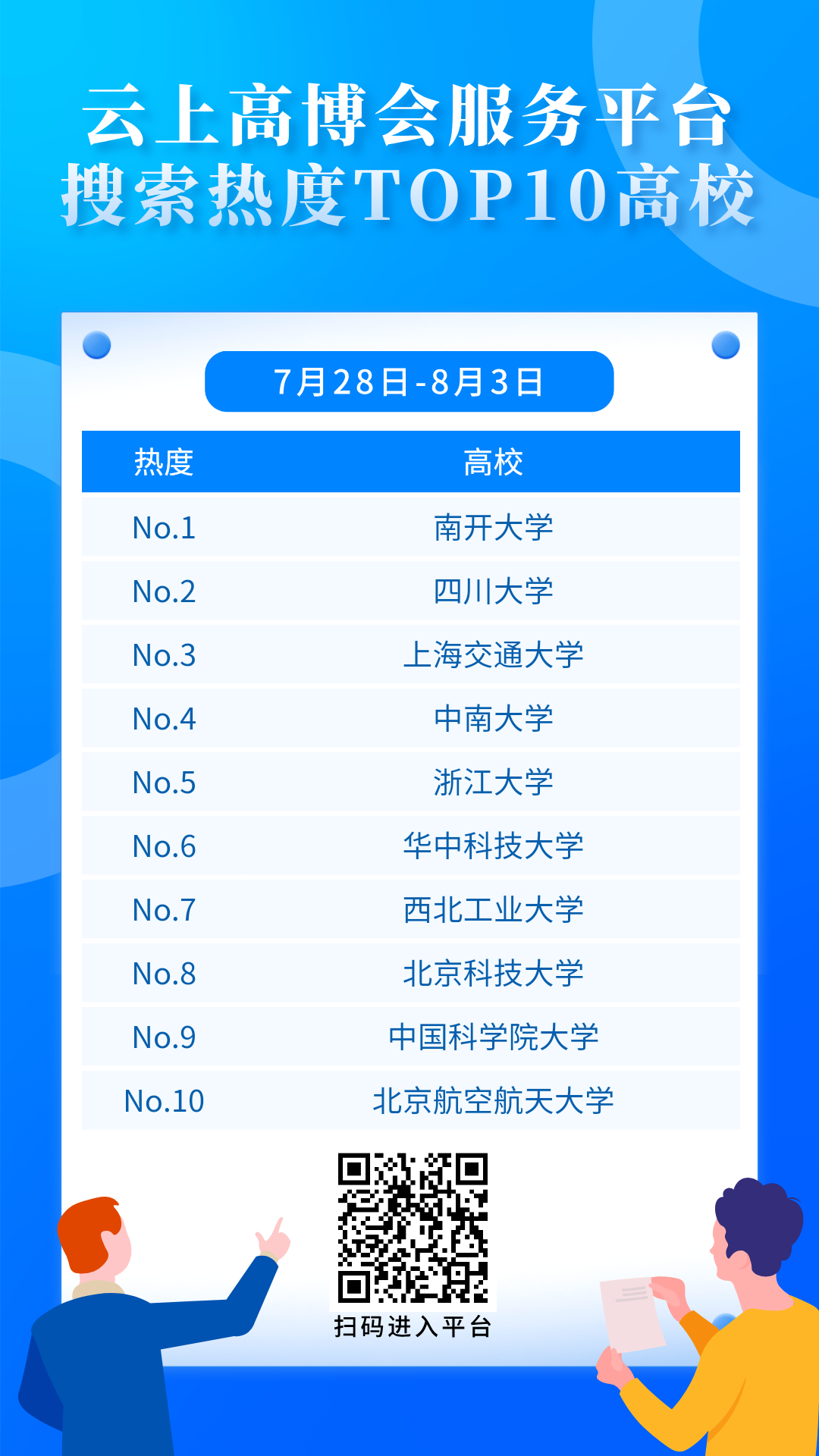 云上高博會熱搜榜(7.28-8.3)TOP10企業(yè)、高校榜單揭曉