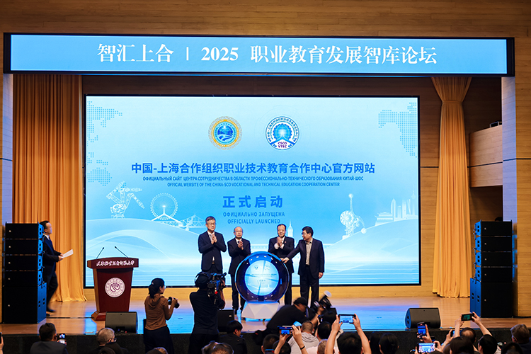 中國-上海合作組織職業(yè)技術教育合作中心官方網(wǎng)站啟動環(huán)節(jié),天津教育委員會副主任羅延安,天津職業(yè)技術師范大學校務委員會主席張金剛,天津職業(yè)技術師范大學校長鄭清春,中國教育在線董事長劉玉明共同啟動中國-上海合作組織職業(yè)技術教育合作中心官方網(wǎng)站,為上合組織職業(yè)教育領域合作注入新的數(shù)字化動力。
