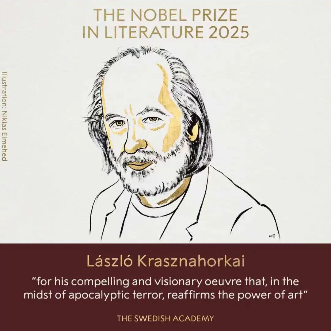 2025年諾貝爾文學(xué)獎授予匈牙利作家拉斯洛·卡撒茲納霍凱,以表彰其“在末日恐怖的背景下,以引人入勝且富有遠見的創(chuàng)作重申了藝術(shù)的力量”。獲獎獎金為1100萬瑞典克朗。