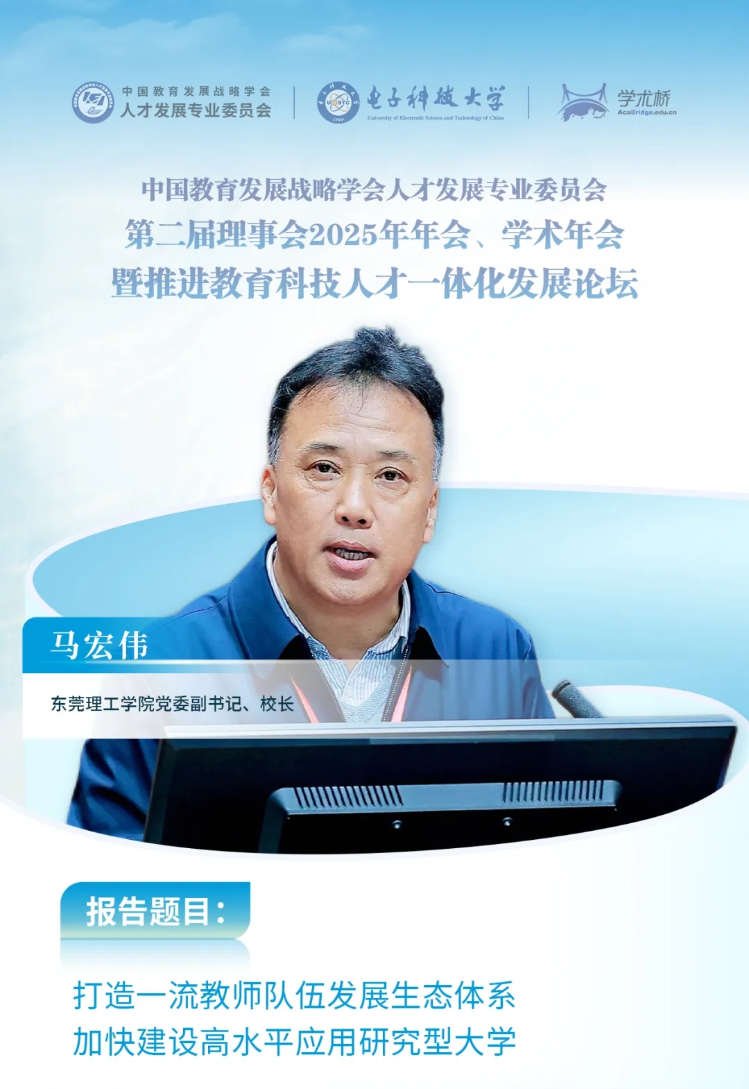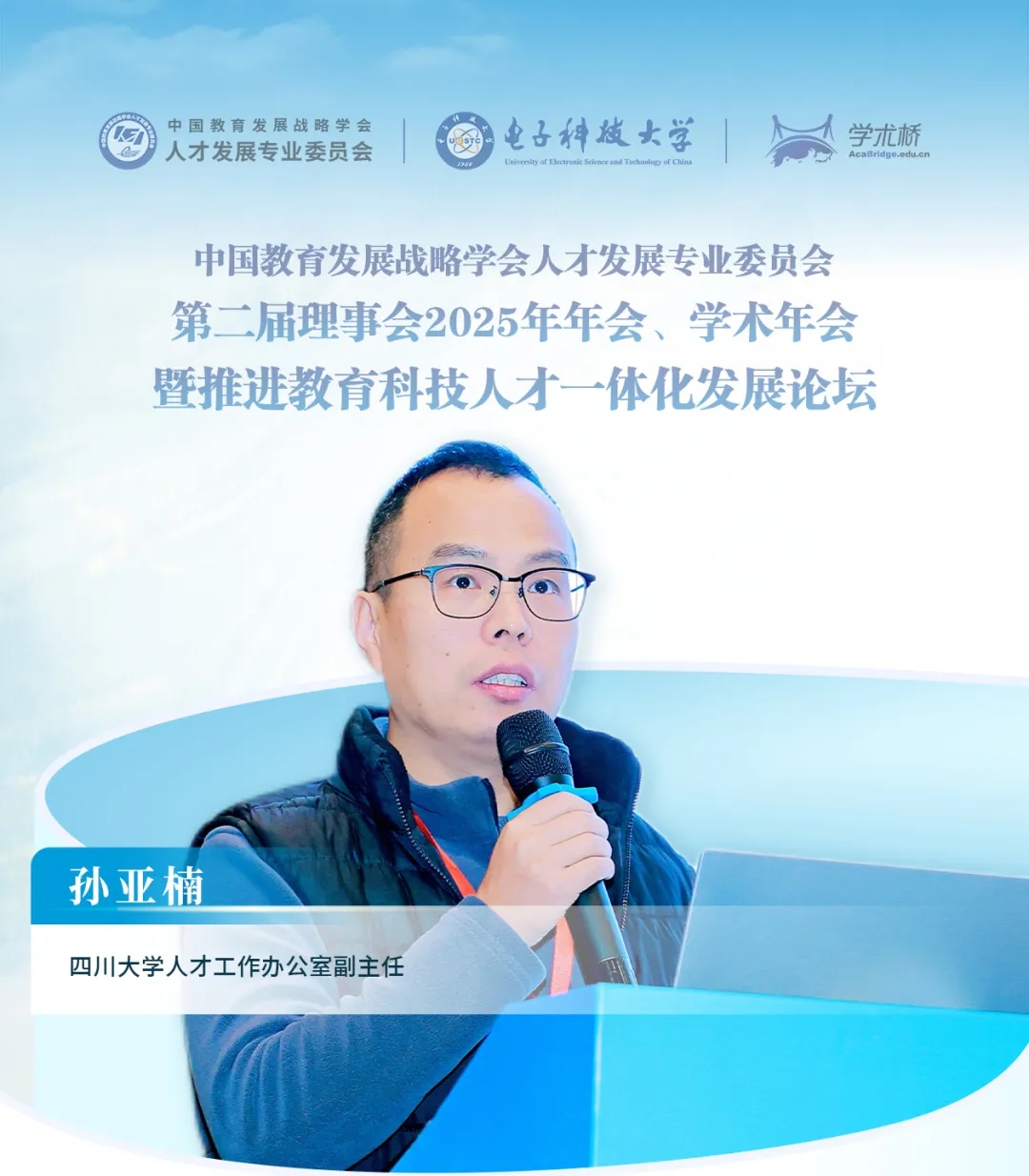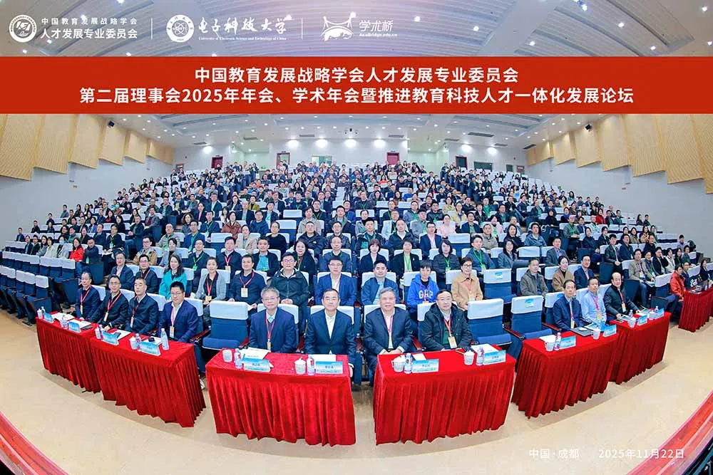 2025年11月22日初冬時節(jié),中國教育發(fā)展戰(zhàn)略學(xué)會人才發(fā)展專業(yè)委員會2025年學(xué)術(shù)年會暨推進教育科技人才一體化發(fā)展論壇在電子科技大學(xué)隆重開幕。銀杏流金,如詩如畫,來自全國近200所高校的500余名代表齊聚大學(xué)校園,共商人才大計,共繪發(fā)展藍圖。