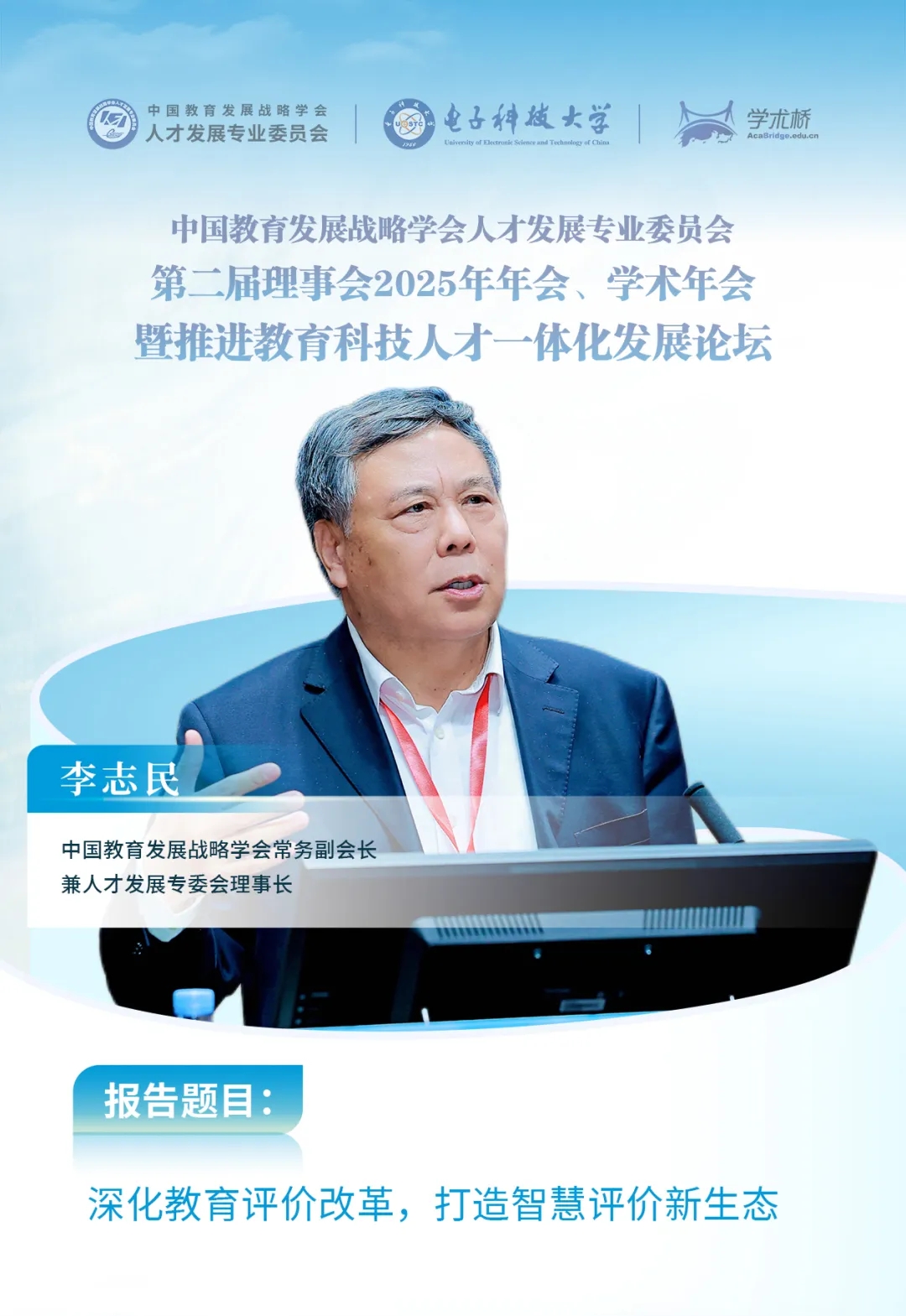 李志民聚焦教育評價這一指揮棒,深入探討如何深化體制機制改革,強調(diào)深化教育評價改革是建設(shè)教育強國的核心驅(qū)動力,必須破除“唯分數(shù)、唯帽子”等頑疾,構(gòu)建以創(chuàng)新能力、質(zhì)量、實效和貢獻為導(dǎo)向的多元評價體系,提出要充分運用現(xiàn)代信息技術(shù),通過技術(shù)賦能構(gòu)建智慧評價新生態(tài),推動教育從“育分”回歸“育人”本質(zhì),為教育科技人才一體化發(fā)展提供堅實支撐。