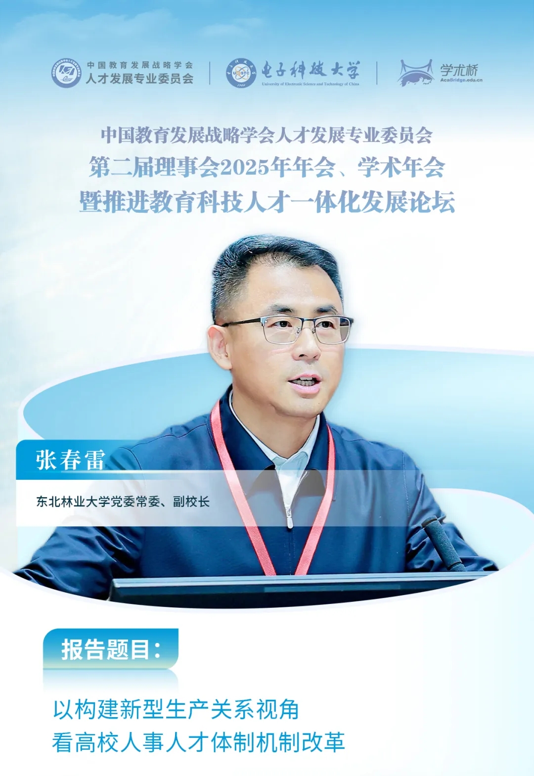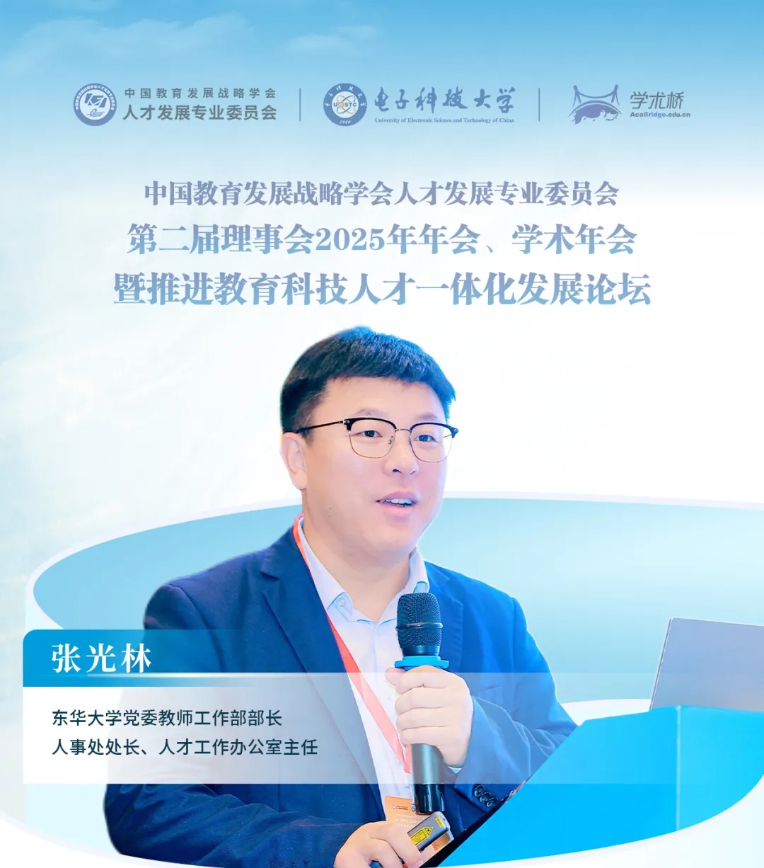 李志民向與會嘉賓表示感謝,肯定了電子科技大學(xué)與學(xué)術(shù)橋聯(lián)合組成的會務(wù)組的精心籌備。他回顧了專委會成立以來在課題研究、平臺搭建等方面的工作成效,強調(diào)專委會聚焦人才發(fā)展戰(zhàn)略與現(xiàn)實問題,通過組織學(xué)術(shù)交流、海外引才等活動,服務(wù)高校人事人才工作。面對新時代教育強國建設(shè)使命,他呼吁各高校人事工作者加強研究、深化交流,共同為推進高等教育強國建設(shè)貢獻智慧與力量。