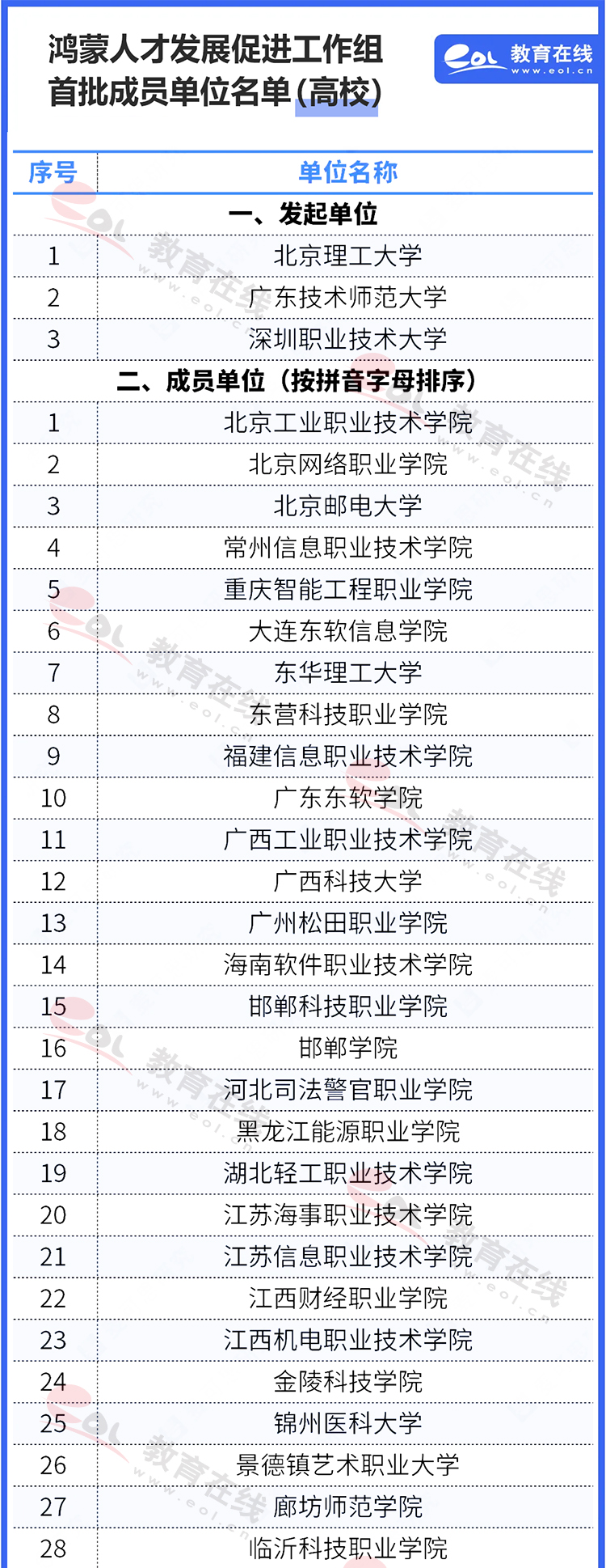 鴻蒙人才發(fā)展促進(jìn)工作組首批成員單位名單(高校部分)