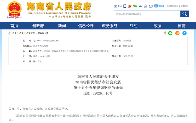 近日,海南省人民政府印發(fā)《海南省國(guó)民經(jīng)濟(jì)和社會(huì)發(fā)展第十五個(gè)五年規(guī)劃綱要》。其中,在“第四十九章 辦好人民滿(mǎn)意的教育”中明確提到:推進(jìn)高校教育布局結(jié)構(gòu)調(diào)整優(yōu)化,推動(dòng)省內(nèi)高校分類(lèi)發(fā)展,力爭(zhēng)新設(shè)新型研究型大學(xué)。