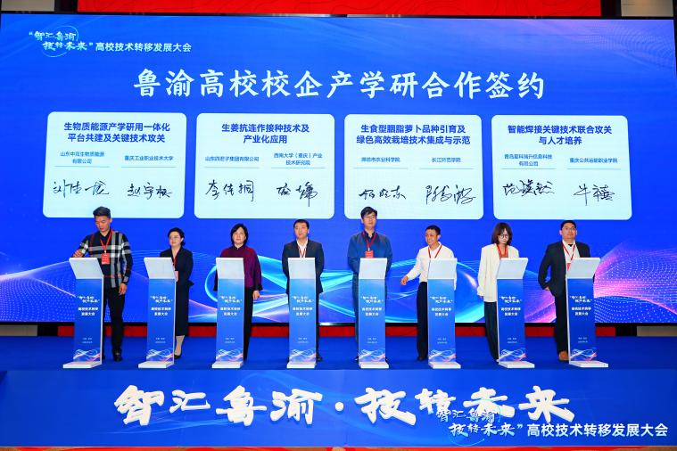 隨后,大會(huì)舉行魯渝校企合作集中簽約儀式。兩地高校、科研院所與企業(yè)現(xiàn)場簽署多項(xiàng)合作協(xié)議,涵蓋生物質(zhì)能源、智能焊接、綠色栽培、智慧養(yǎng)殖、倉儲(chǔ)物流等多個(gè)領(lǐng)域,推動(dòng)一批優(yōu)質(zhì)項(xiàng)目達(dá)成合作。