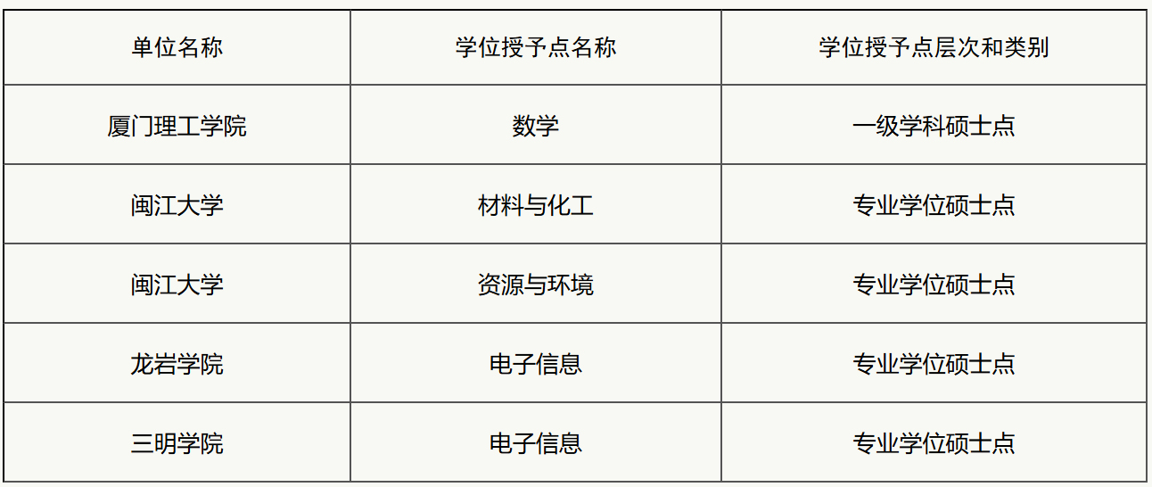 福建省學(xué)位委員會(huì)辦公室關(guān)于2026年度學(xué)位授予點(diǎn)動(dòng)態(tài)調(diào)整省級統(tǒng)籌增設(shè)碩士學(xué)位授予點(diǎn)推薦名單的公示