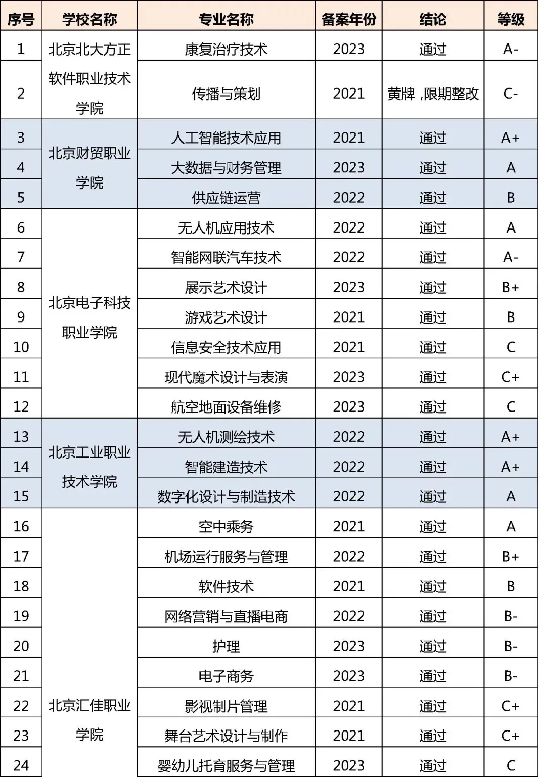 北京市教委提醒各學(xué)校通過(guò)“北京市職業(yè)院校專(zhuān)業(yè)設(shè)置管理系統(tǒng)”查看“一校一專(zhuān)一策”監(jiān)測(cè)評(píng)價(jià)意見(jiàn),進(jìn)一步提升專(zhuān)業(yè)設(shè)置的科學(xué)性和適應(yīng)性,并明確表示,評(píng)價(jià)結(jié)論為“黃牌、限期整改”的專(zhuān)業(yè)應(yīng)在規(guī)定期限內(nèi)完成整改并提交整改報(bào)告,整改后仍未達(dá)到要求的專(zhuān)業(yè)給予“紅牌”退出,撤銷(xiāo)專(zhuān)業(yè)辦學(xué)資格。