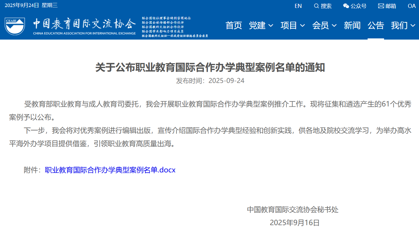 下一步,中國(guó)教育國(guó)際交流協(xié)會(huì)將對(duì)優(yōu)秀案例進(jìn)行編輯出版,宣傳介紹國(guó)際合作辦學(xué)典型經(jīng)驗(yàn)和創(chuàng)新實(shí)踐,供各地及院校交流學(xué)習(xí),為舉辦高水平海外辦學(xué)項(xiàng)目提供借鑒,引領(lǐng)職業(yè)教育高質(zhì)量出海。