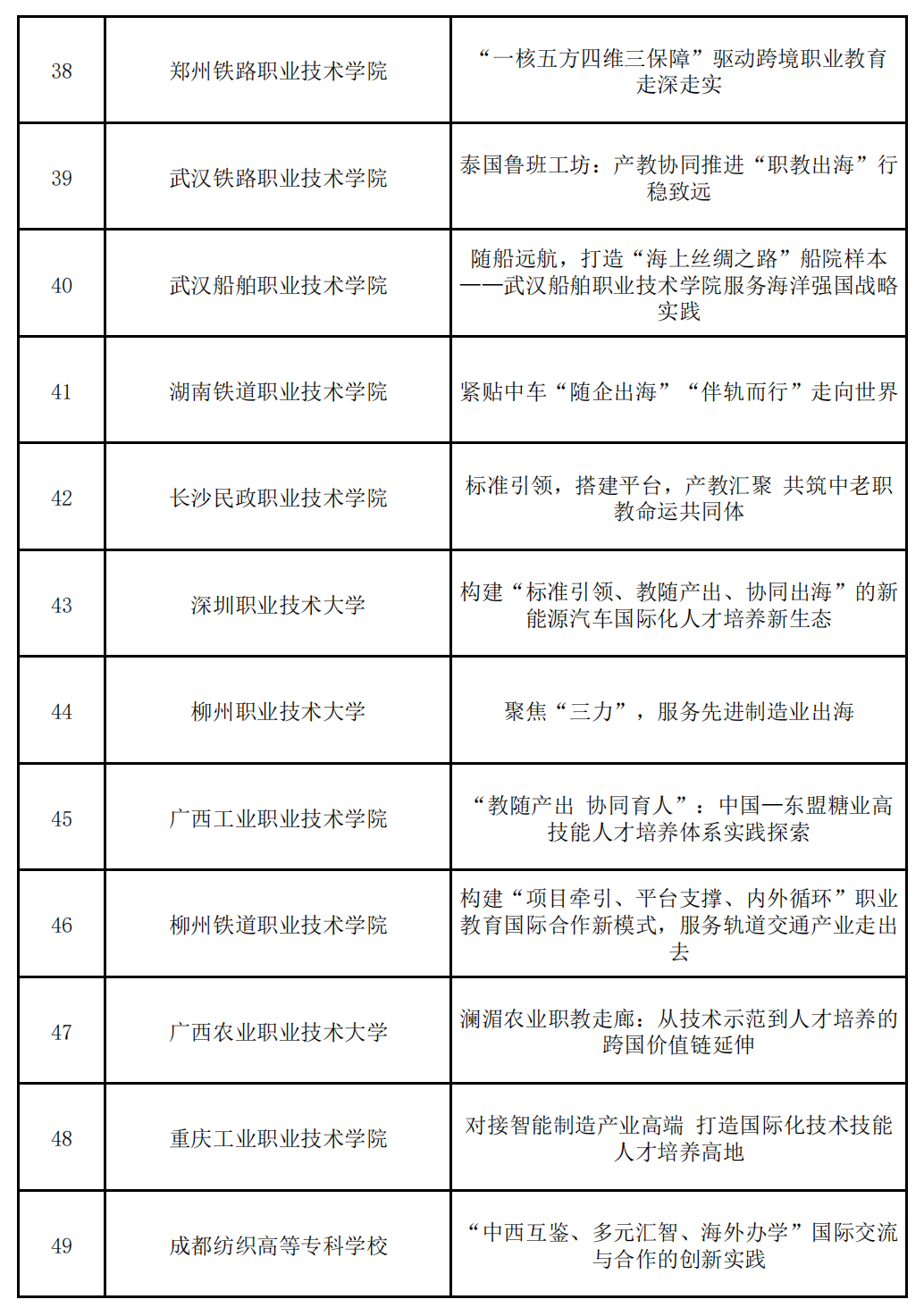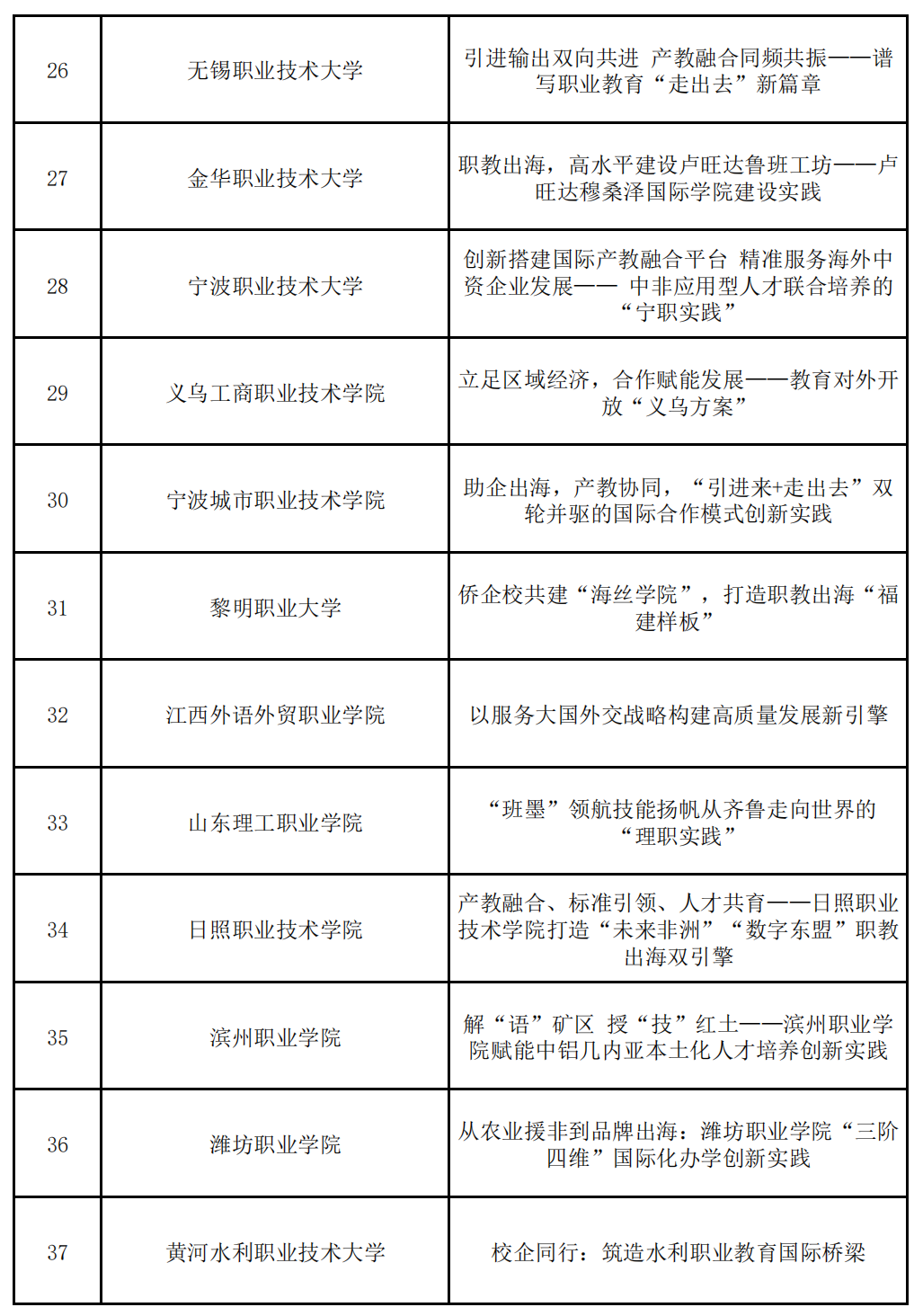 9月24日,中國(guó)教育國(guó)際交流協(xié)會(huì)發(fā)布《關(guān)于公布職業(yè)教育國(guó)際合作辦學(xué)典型案例名單的通知》,受教育部職業(yè)教育與成人教育司委托,中國(guó)教育國(guó)際交流協(xié)會(huì)開(kāi)展職業(yè)教育國(guó)際合作辦學(xué)典型案例推介工作?,F(xiàn)將征集和遴選產(chǎn)生的61個(gè)優(yōu)秀案例予以公布。根據(jù)名單,全國(guó)共有52所高職院校入選。