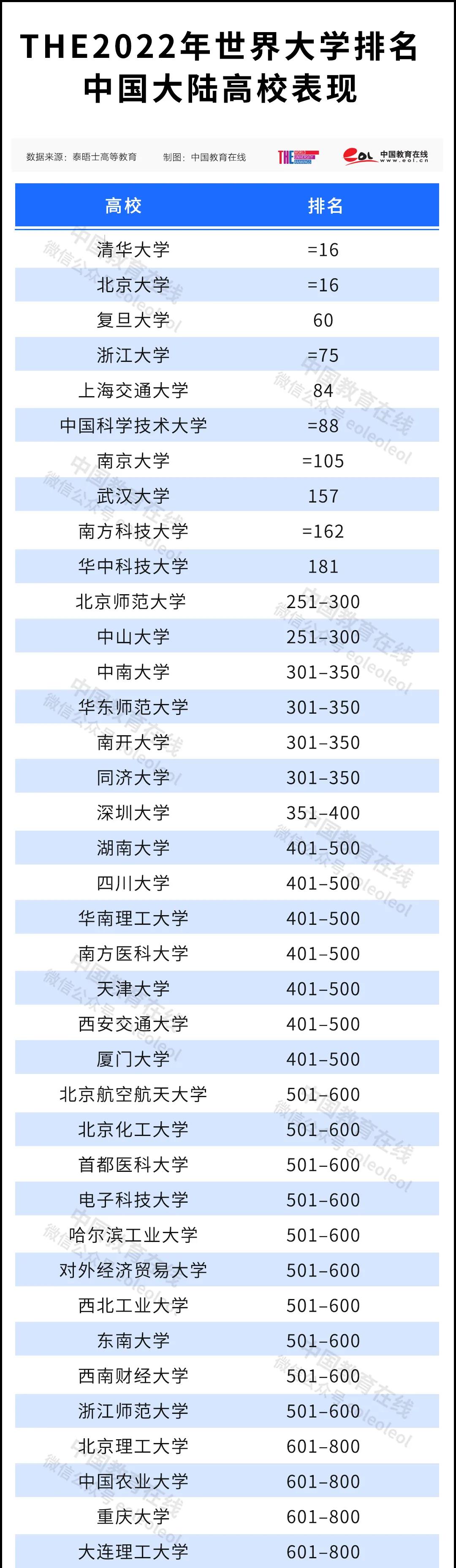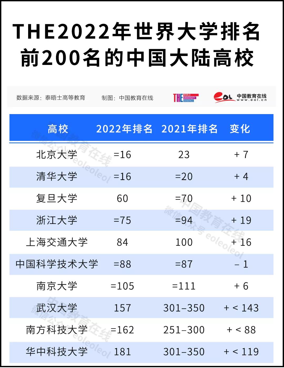 清華大學、北京大學在2022年泰晤士高等教育世界大學排名中并列第16名,與2021年世界大學排名相比,北京大學排名提升了7位,清華大學提升了4位。