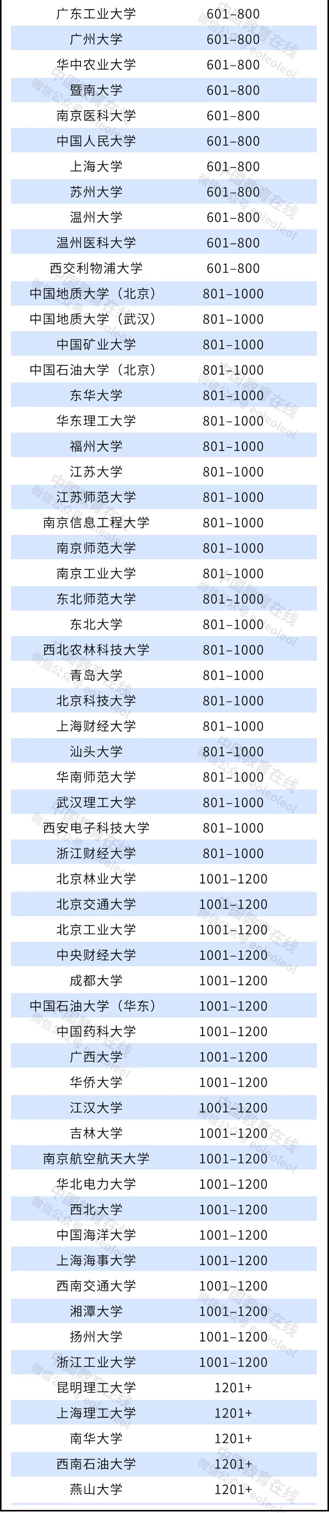 其中,廣州大學(第 601-800 名)是今年中國大陸排名最高的新上榜高校。