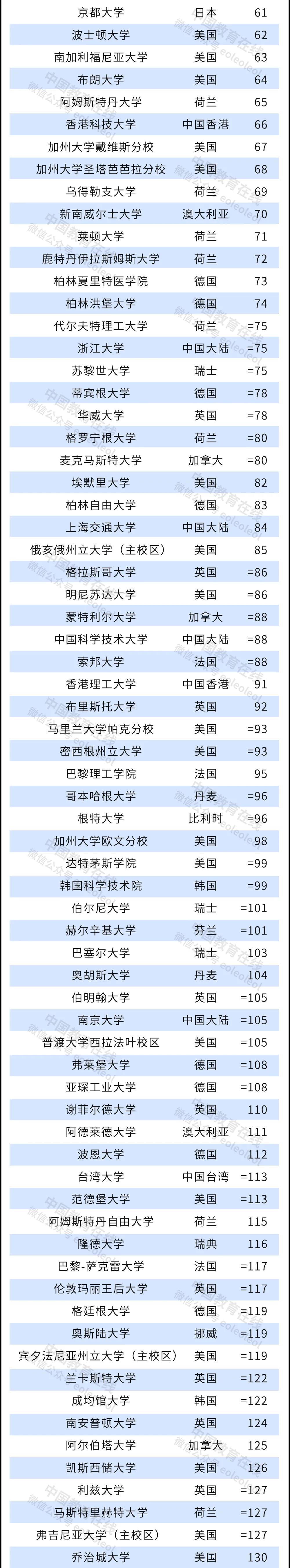根據本年度的排名方法,日本、韓國、俄羅斯、新加坡和中國香港的高校都取得了有史以來的最好名次,日本東京大學(第 35 位)、香港大學(第 30 位)、韓國首爾大學(第 54 位)、新加坡國立大學(第 21 位)和俄羅斯莫斯科羅蒙諾索夫國立大學(第 158 位)排名均有所上升。