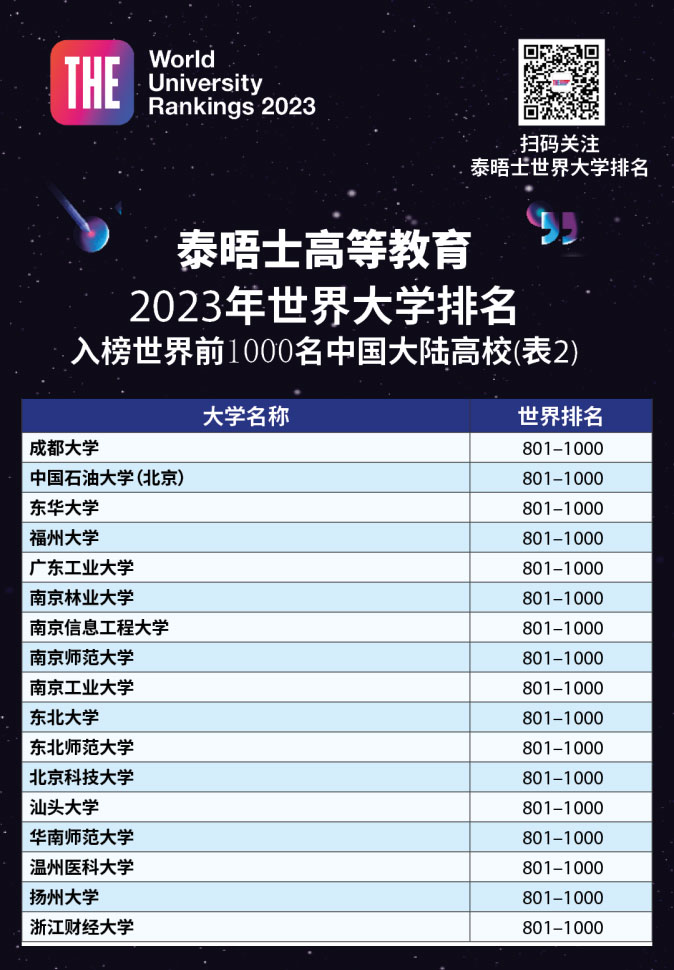 2023年共有13所中國(guó)大陸的高校首次上榜,其中長(zhǎng)沙理工大學(xué)(第501-600名)為今年中國(guó)大陸排名最高的新上榜高校。