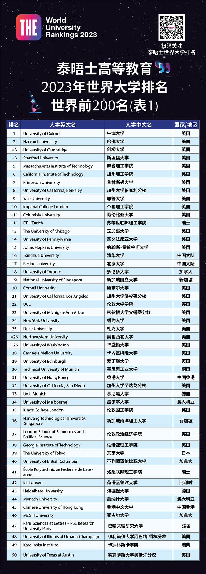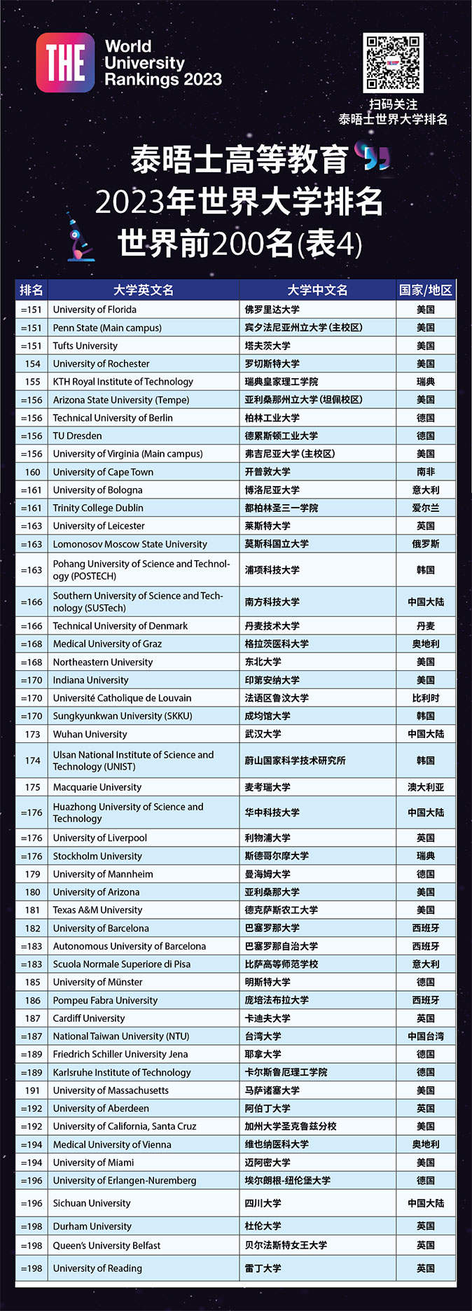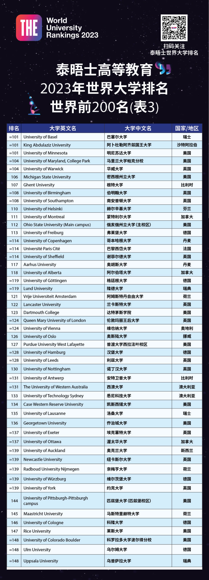 2023年的排名中共有來自104個(gè)國(guó)家/地區(qū)的1799所大學(xué)上榜,較去年增加了137所,創(chuàng)歷史新高。