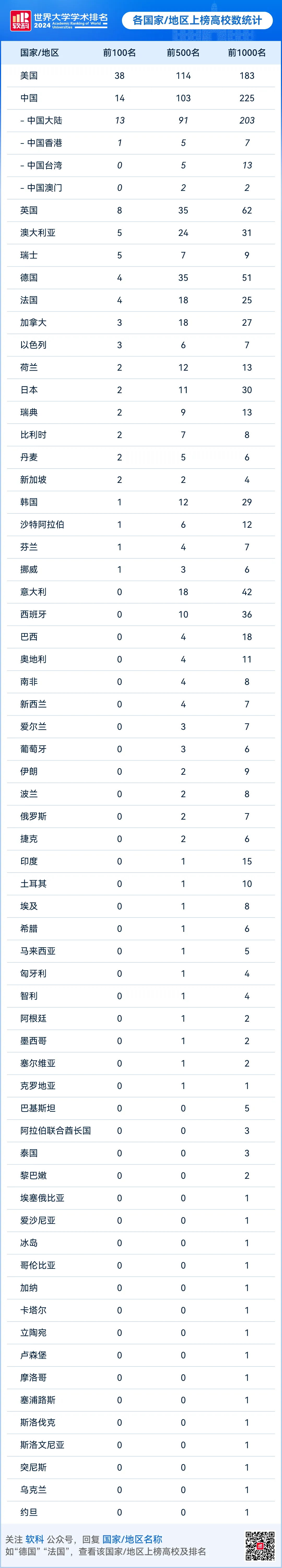 在全球1000強(qiáng)大學(xué)榜單中,今年中國內(nèi)地共有203所高校上榜,較去年增加12所,超過美國上榜高校數(shù)(183所),位列世界第一。顯示出中國研究型大學(xué)群體的學(xué)術(shù)實(shí)力和國際影響力在繼續(xù)攀升。