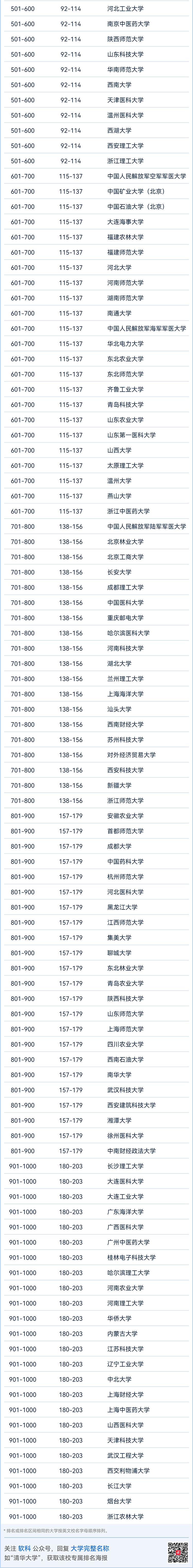 注:排名或排名區(qū)間相同的大學(xué)按英文校名字母順序排列。