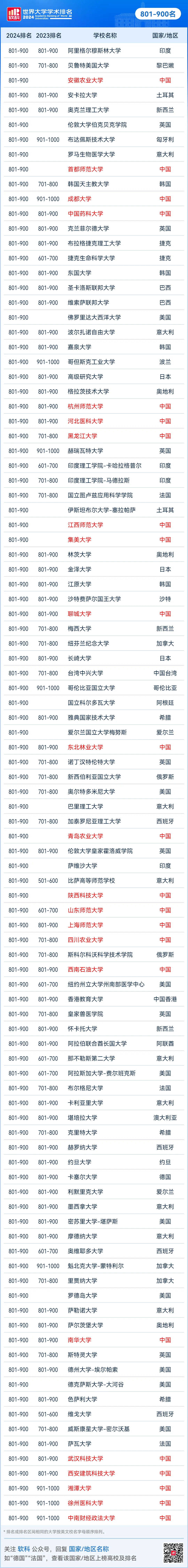 2024軟科世界大學(xué)學(xué)術(shù)排名完整名單