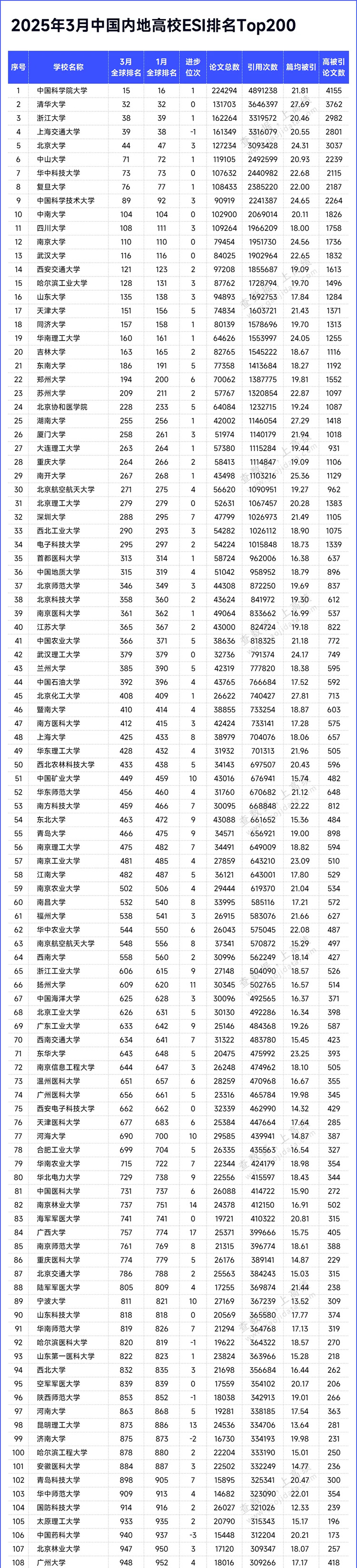 3月13日,科睿唯安(Clarivate Analytics)公布了2025年3月的ESI最新數(shù)據(jù)。ESI(基本科學指標數(shù)據(jù)庫)是目前世界范圍內(nèi)普遍用以評價高校、學術(shù)機構(gòu)、國家或地區(qū)國際學術(shù)水平及影響力的重要評價指標工具之一。本次數(shù)據(jù)覆蓋時間范圍為2014年1月到2024年12月。