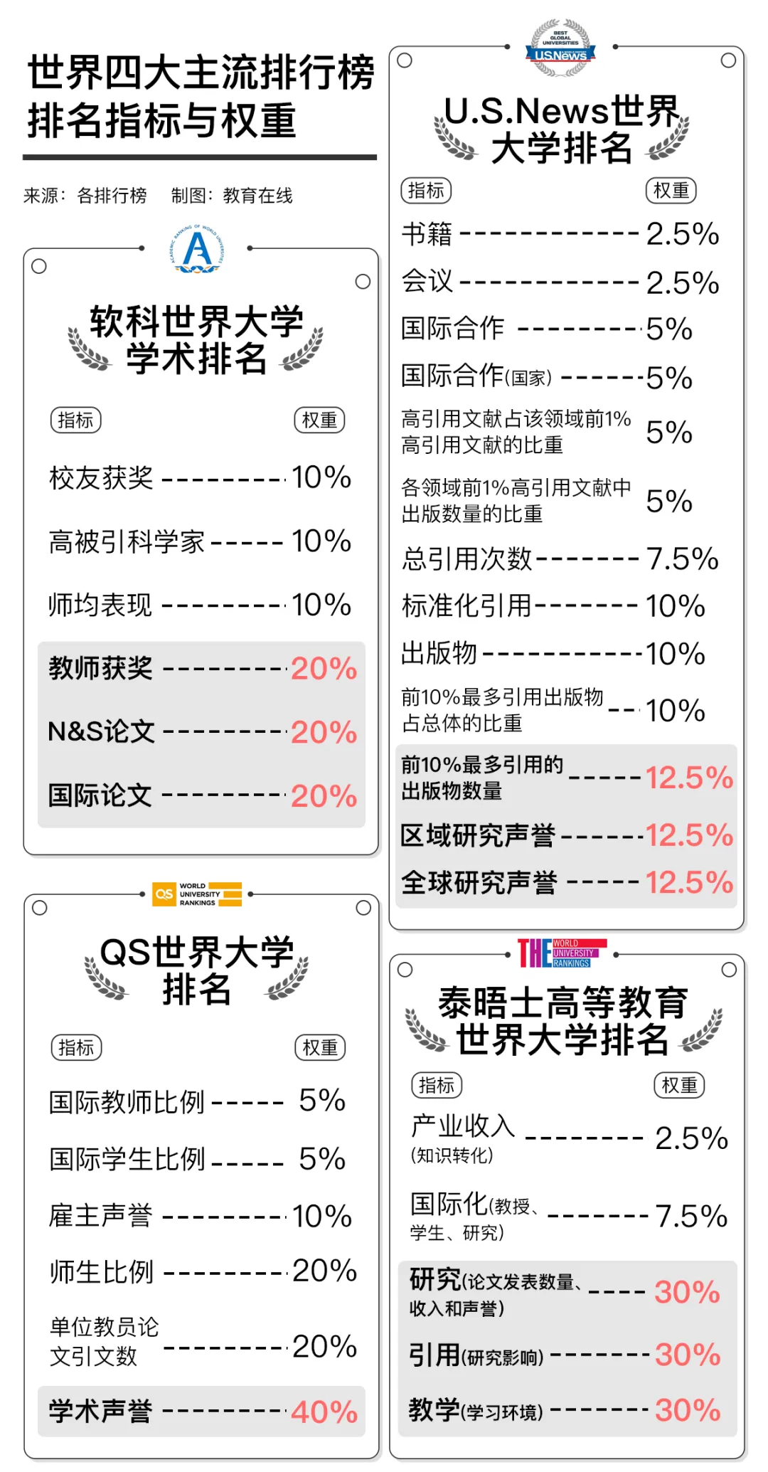 四大世界大學(xué)排名指標雖不同,但能上榜的高校,無論是學(xué)術(shù)影響力還是聲譽都是受國際認可的,中國高校異軍突起之勢明顯。看排名,但不唯排名,才是一個理智、正確的態(tài)度。