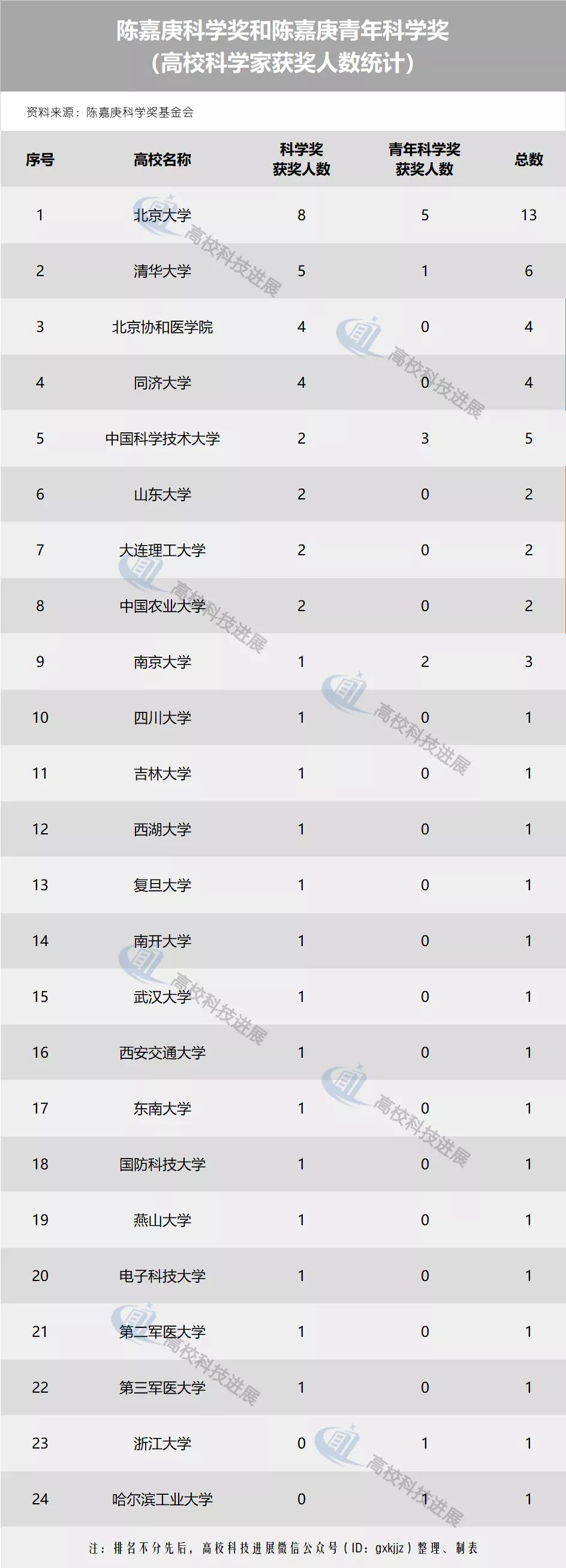 在有獲獎科學(xué)家的24所高校中,北京大學(xué)表現(xiàn)出了強勁實力,清華大學(xué)、北京協(xié)和醫(yī)學(xué)院、南開大學(xué)、東南大學(xué)、國防科技大學(xué)等其他23所高校,同樣取得了很好的成績。