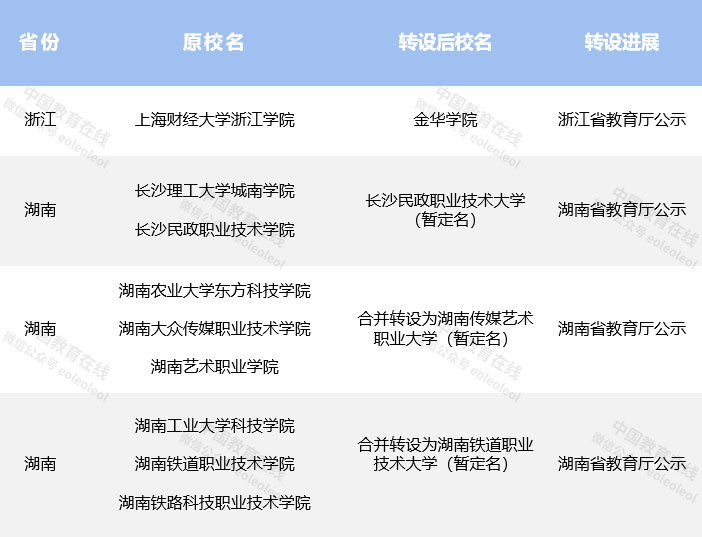 部分高校轉(zhuǎn)設(shè)申請(qǐng)已獲省級(jí)教育廳公示