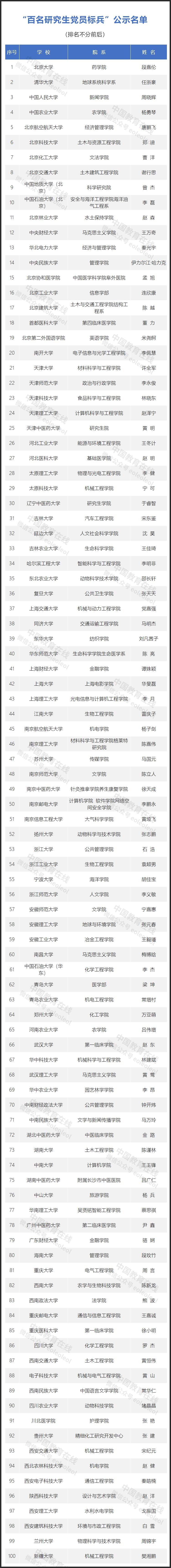 第二批全國高?!鞍賯€研究生樣板黨支部”和 “百名研究生黨員標兵”名單公示