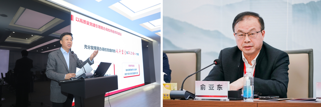 教育部思政課總教指委主任、民辦高校思政課分教指委主任楊曉慧,中國民辦教育協(xié)會黨建專委會理事長俞亞東講話