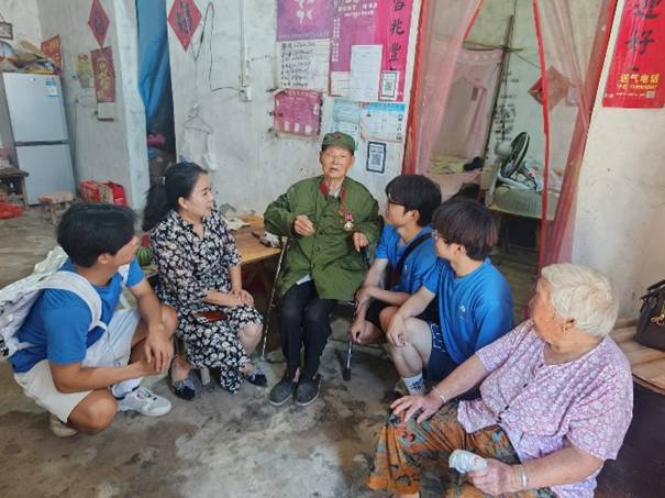 在王寨鎮(zhèn)退役軍人服務(wù)站劉敏站長(zhǎng)帶領(lǐng)下,實(shí)踐團(tuán)有幸拜訪到了94歲抗美援朝老兵郭吉宣。1951年入朝作戰(zhàn)的他,曾在沙里院車(chē)站冒死搶運(yùn)物資。“炸彈埋住我時(shí),以為要光榮了……”講述被戰(zhàn)友從彈坑救出的經(jīng)歷,老人淚光閃爍。停戰(zhàn)后,郭老繼續(xù)駐防朝鮮東海岸挖進(jìn)行軍事訓(xùn)練和建造防空設(shè)施,于1956年離開(kāi)朝鮮回國(guó),1958年復(fù)原回鄉(xiāng)。劉敏站長(zhǎng)說(shuō)到,“讓退役軍人成為全社會(huì)尊重的人,讓軍人成為全社會(huì)尊崇的職業(yè),讓退役軍人有更多的獲得感、歸屬感、榮譽(yù)感和幸福感”。從政策落地的 “最后一公里” 到生活冷暖的 “細(xì)微之處”,王寨鎮(zhèn)退役軍人服務(wù)站用實(shí)打?qū)嵉男袆?dòng)為退役軍人撐起一片晴空。