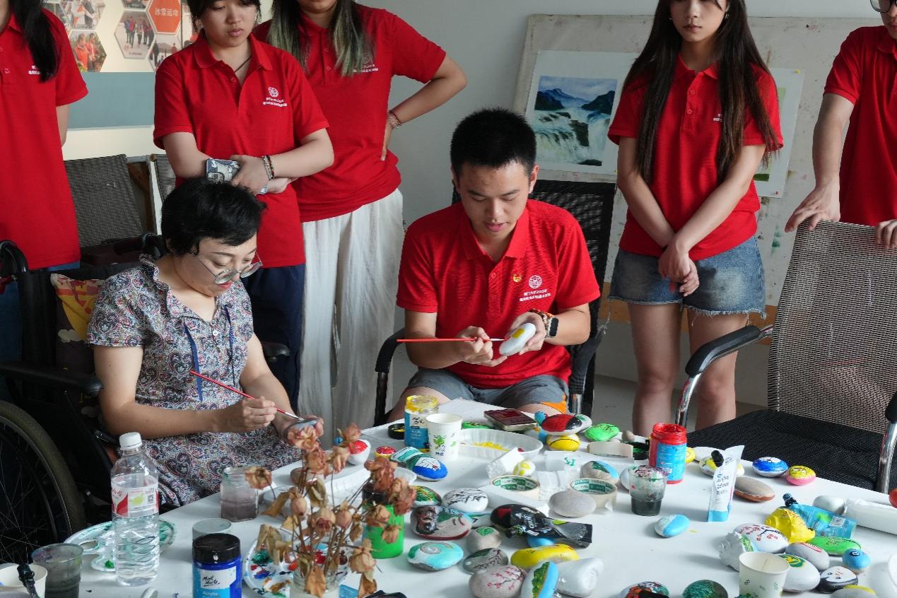 圖為實踐隊在長城大本營幫助殘疾朋友進行鵝卵石文創(chuàng)繪制。吳雅思 供圖