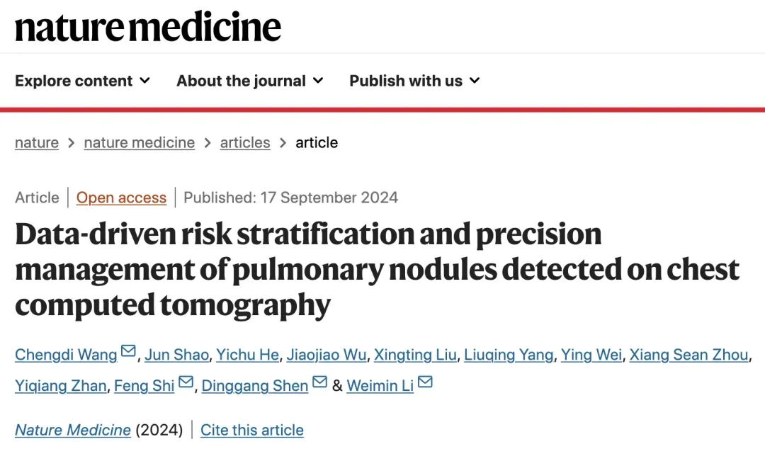 近日,四川大學(xué)華西醫(yī)院呼吸與危重癥醫(yī)學(xué)科李為民教授、王成弟研究員團(tuán)隊(duì)在醫(yī)學(xué)頂級期刊Nature Medicine發(fā)表了最新研究成果“Data-driven risk stratification and precision management of pulmonary nodules detected on chest computed tomography”?;谥袊巳悍伟┖Y查隊(duì)列、肺結(jié)節(jié)臨床隊(duì)列,創(chuàng)新性研發(fā)基于數(shù)據(jù)驅(qū)動的中國肺結(jié)節(jié)報(bào)告和數(shù)據(jù)系統(tǒng)(Chinese Lung Nodules Reporting and Data System,C-Lung-RADS),實(shí)現(xiàn)了肺結(jié)節(jié)惡性風(fēng)險(xiǎn)精準(zhǔn)分級和個性化管理。