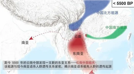 本研究的第二項重要發(fā)現是證實了云南可能是南亞語系族群早期分布的核心區(qū)域之一。以佤族、布朗族等主要分布于中國西南、華南以及印度東北部、東南亞(如越南、柬埔寨、老撾等地部分民族)的南亞語系族群起源及擴散問題長期眾訟不決,尤其是其起源地、擴散時間、擴散路徑等問題爭議很大。目前主流假設源于語言學模型,缺乏直接遺傳學證據。本研究通過古人基因組捕獲、測定、分析,在云南中部距今5500至1400年古人群中識別出一種新的獨特東亞祖源,研究團隊將其命名為“云南中部祖先人群”(Central Yunnan Ancestry),分析表明這一祖源與當今南亞語系人群密切相關,否定了既往認為的南亞語系族群印度或東南亞起源說,提出了重新審視南亞語系族群形成、傳播模式等一系列問題。